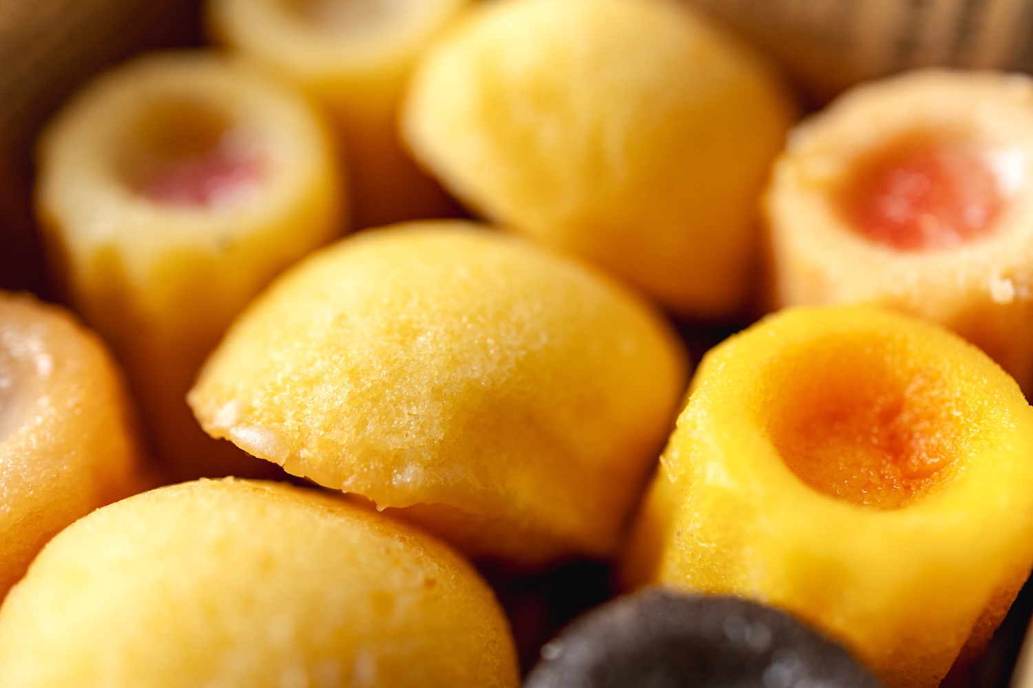 We use whole, carefully grown domestic lemons—free from both wax and fungicides—incorporating everything down to the peel. Combined with strictly selected, safe ingredients like Hokkaido wheat and butter, the secret to its deliciousness lies in the refreshing burst of lemon flavor and its uniquely moist, chewy texture.